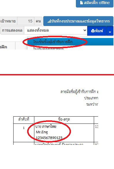 ปัญหา:เนื่องจาก สพร.3 ชลบุรี ใช้ระบบ E-service ในการสมัครฝึกอบรม ในบางกรณีพบปัญหาผู้สมัครกรอก ชื่อ-สกุล (ไทย-อังกฤษ) หรือเลข 13 หลัก ผิดพลาด ข้อแนะนำ:สพร. 3 ชลบุรี ขอความอนุเคราะห์เพิ่มข้อมูลชื่อภาษาอังกฤษและเลขประจำตัวประชาชน 13 หลักของผู้สมัคร ในใบเซ็นชื่อผู้เข้ารับการฝึกอบรม เพื่อให้ผู้รับการฝึกตรวจสอบความถูกต้องก่อนเริ่มการฝึก จึงเรียนมาเพื่อโปรดพิจารณา