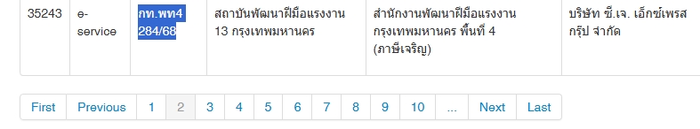 | 5308 | ระบบส่งเสริมการพัฒนาฝีมือแรงงาน | พงษ์ธร นราธนากร 02-4582714 | กรุงเทพมหานคร | ขอแจ้งเปลี่ยนเลขที่เอกสารในระบบฝึกเตรียมเข้าทำงาน ID ที่ 35243 บริษัท ซี.เจ. เอ็กซ์เพรส กรุ๊ป จำกัด จากเลขที่เอกสารเดิม กท.พท4 284/68 เป็นเลขที่ กท.พท4 298/68 ครับ